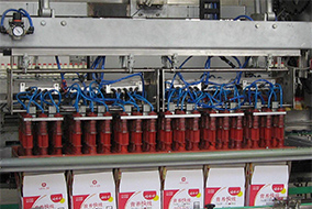 采用三級減壓模式,產(chǎn)品充分減壓,使抓瓶頭與產(chǎn)品對位準(zhǔn)確,抓瓶成功率高;產(chǎn)品進(jìn)入裝箱工序后處于無壓力平穩(wěn)輸送狀態(tài),基本杜絕倒瓶現(xiàn)象。
